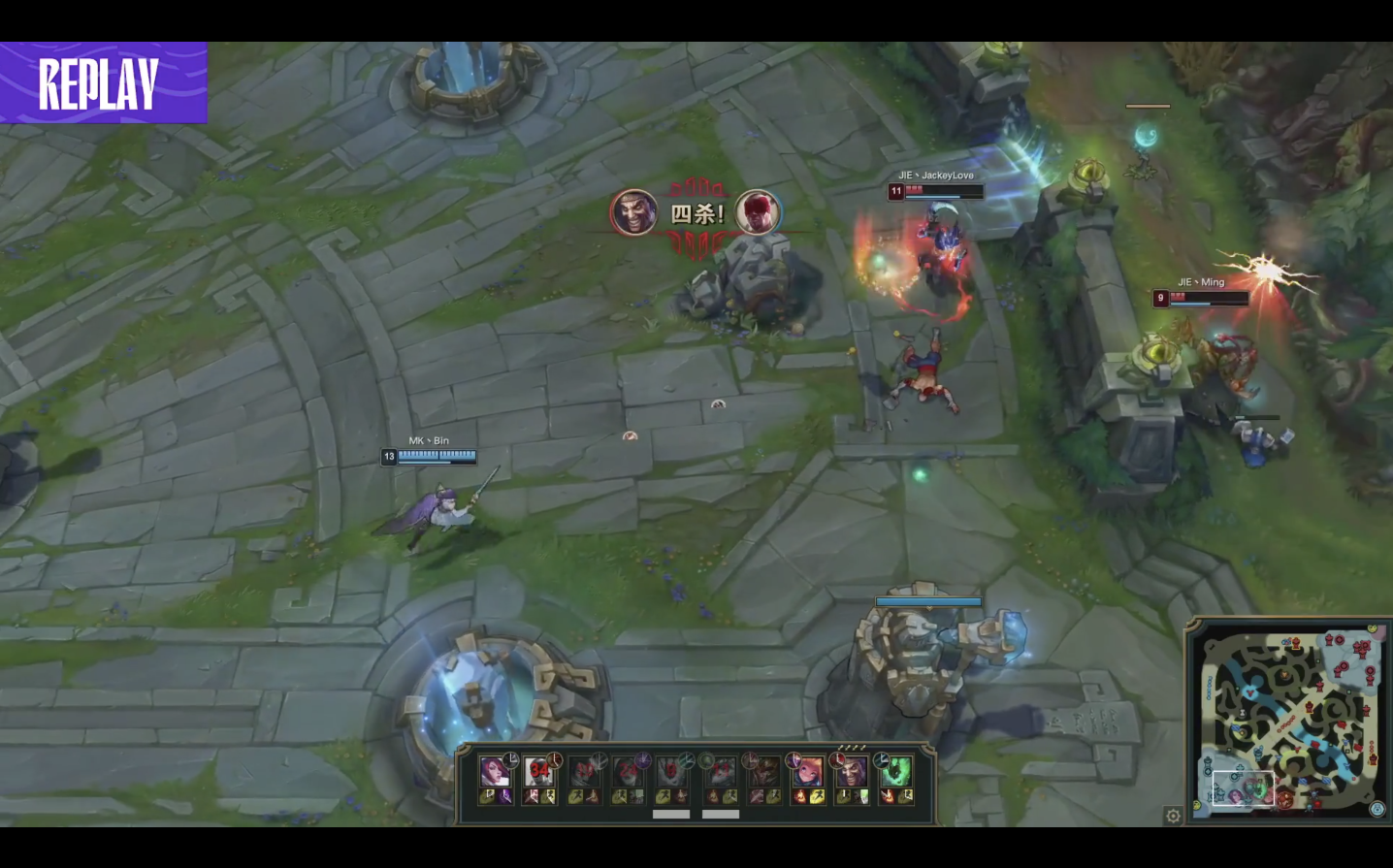 在第二场“峡谷路人王”中,上路Ale与阿Bin两个石头人被迫和平发育,Jiejie选出剑圣打野对位Wei的男枪,中单则是icon与Scout的双劫对抗,下路两边辅助都选出拉克丝,AD位Gala的EZ对位JackeyLove烬。中期Meiko的拉克丝打出奇效,角度刁钻的Q技能屡屡突破Team Jiejie阵线,icon的劫也多次对位单杀,最终Team Meiko获胜,这局最秀选手花落本局表现稳健接管比赛的打野Wei。