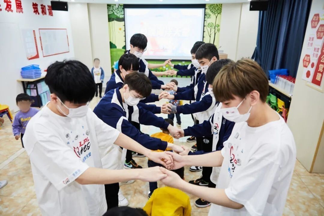 在学校老师的带领下,选手们一起参观了学校,深入了解了自闭症。为了能亲身陪伴支持到这些孩子们,在家长的陪同下,选手和孩子们一同参与了社交游戏课,提升孩子们的认知理解能力,并以“海洋天堂”为主题,共同创作了画作。除了选手们积极践行公益行动之外,LPL Cares将和17支俱乐部一起,将本次全明星正赛三局比赛的经济总和(共34.3万元),全数捐赠给壹基金“海洋天堂计划”,助力自闭症儿童及其家庭享有有尊严、无障碍、有品质的社会生活。