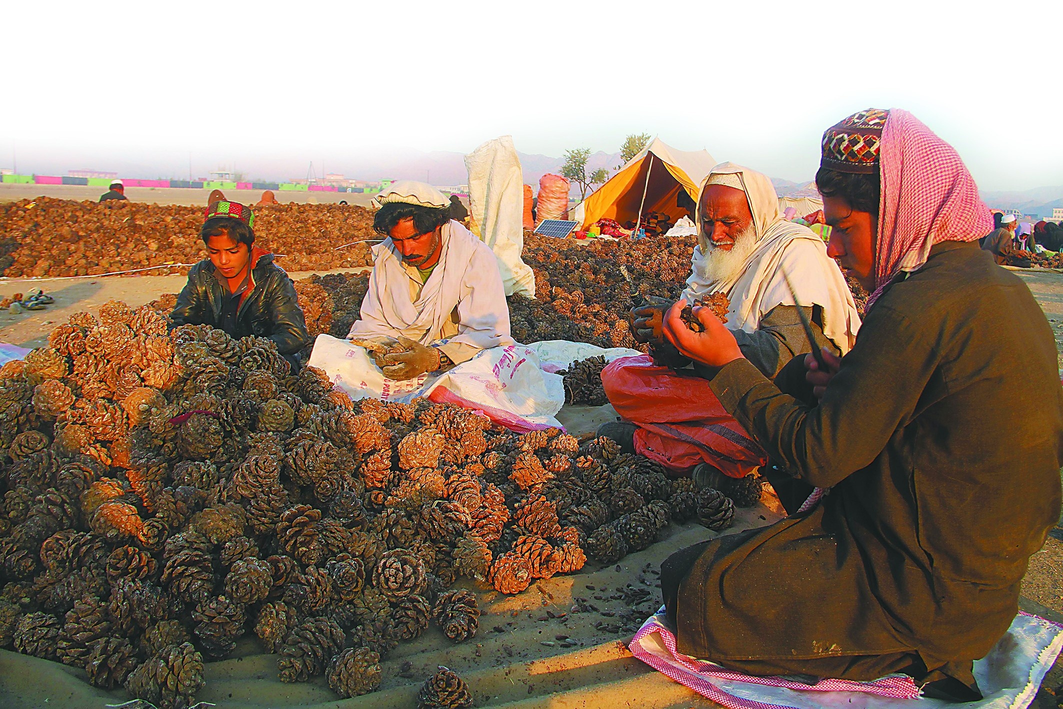 笔者按照塔瑞克给出的数据粗略估算,每年将有超过10万阿富汗人参与到收获松子的季节性劳作中。