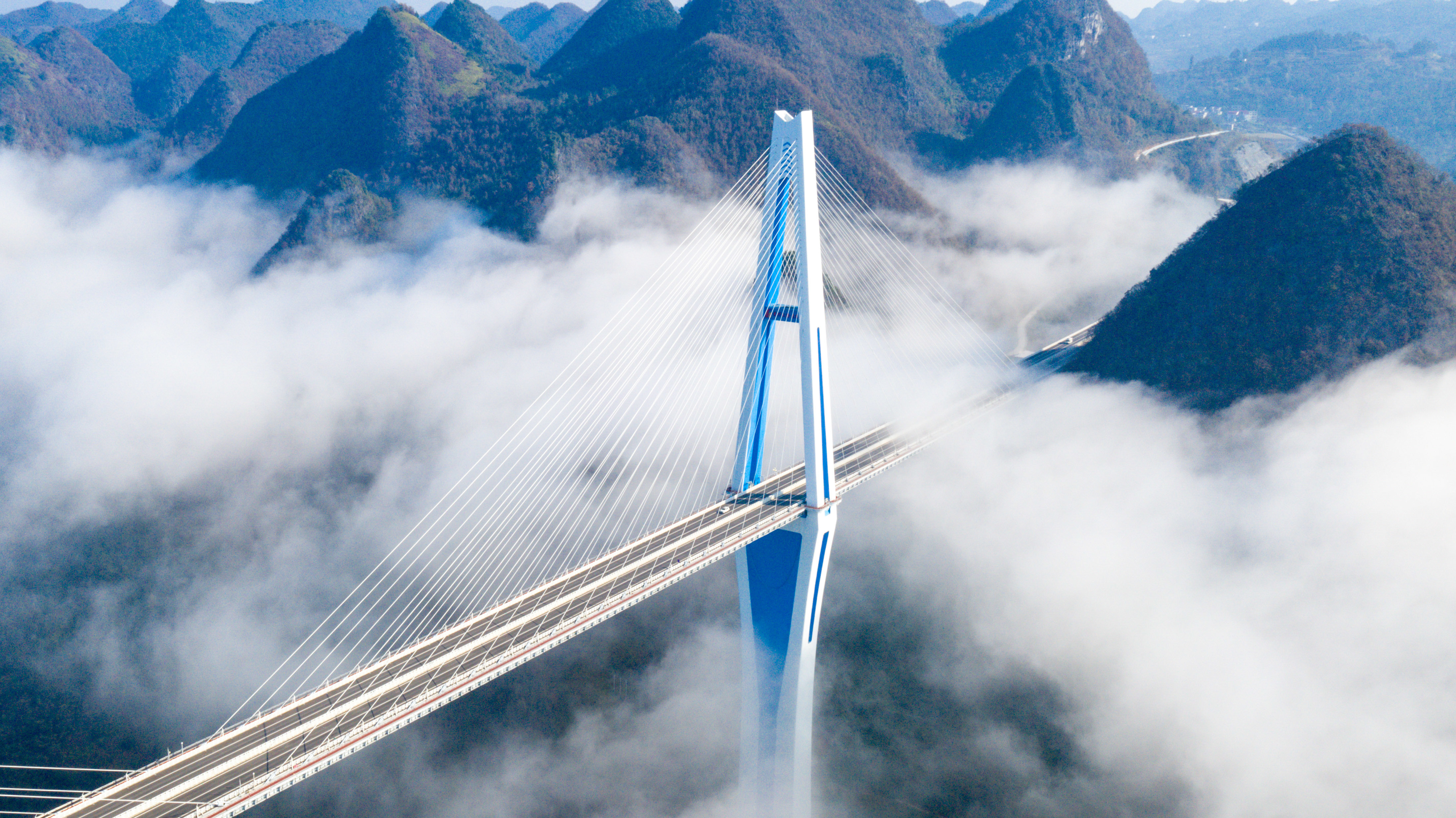 作为中国唯一没有平原支撑的省份,贵州在喀斯特高原架起2万余座桥梁,在群山峻岭间建出“高速平原”。贵州的桥梁数量多、类型全、技术复杂、施工难度极大,创造了数十项“世界第一”。覆盖梁桥、拱桥、悬索桥、斜拉桥等,几乎包揽了当今全部桥型,是名副其实的“桥梁博物馆”。世界高桥前100名中,40余座在贵州。从海拔500多米的赤水河谷,到海拔2000多米的乌蒙高原,一座座架设在高山峡谷间的世界级大桥,让天堑变通途。