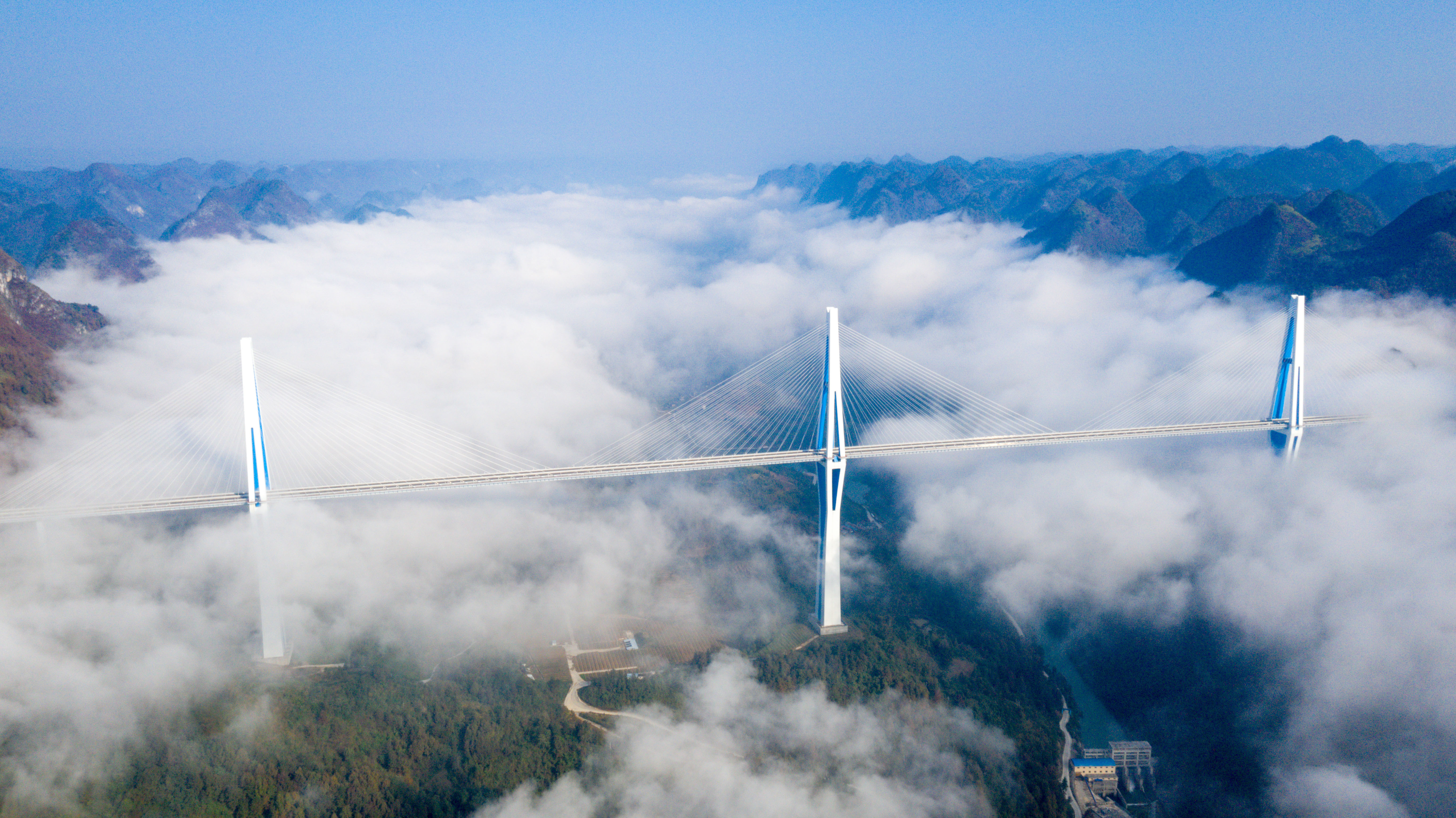 11月26日拍摄的贵州鸭池河大桥(无人机照片)。新华社记者 欧东衢 摄