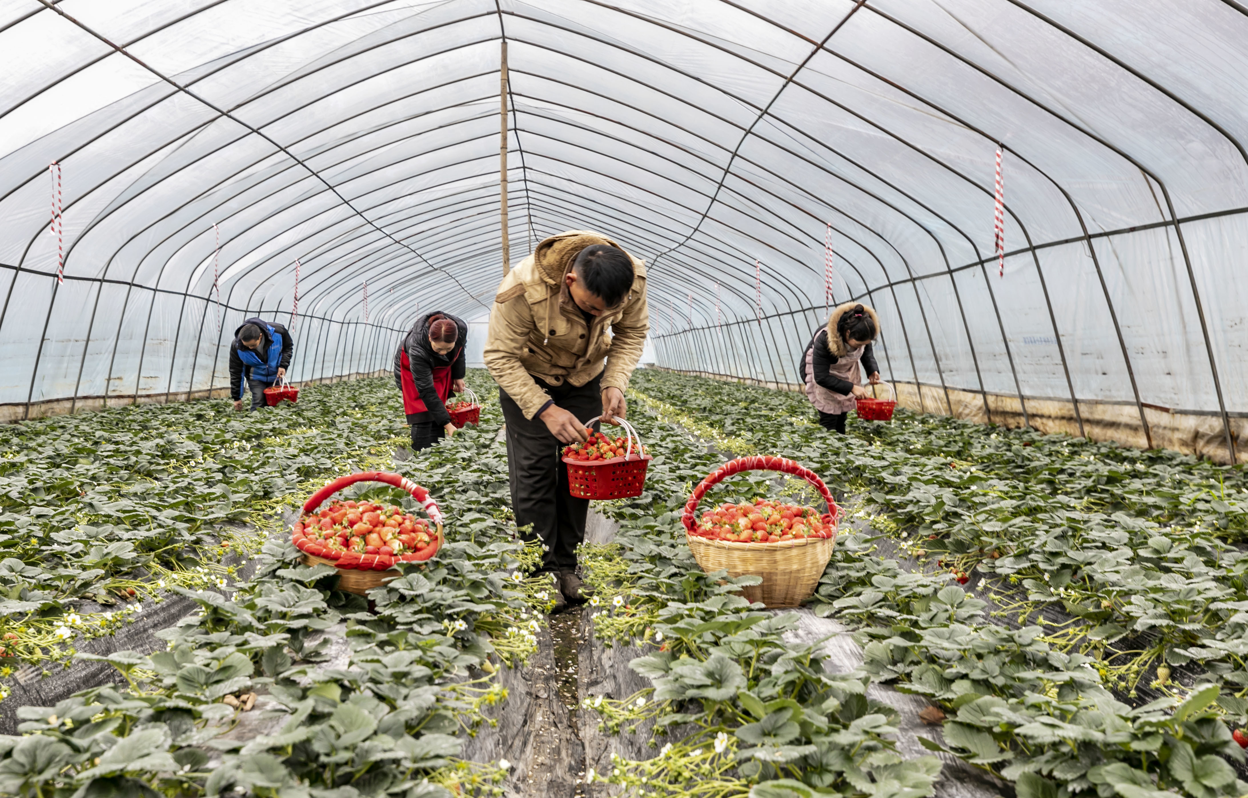 近日,贵州省黔西市锦星镇白泥村生态草莓种植基地一片繁忙,村民采摘草莓抢鲜供应市场。近年来,黔西市大力调整产业结构,在社区、乡镇按照“合作社+公司+农户”的模式进行生态草莓种植,因地制宜发展农业经济,带动群众就业增收。
