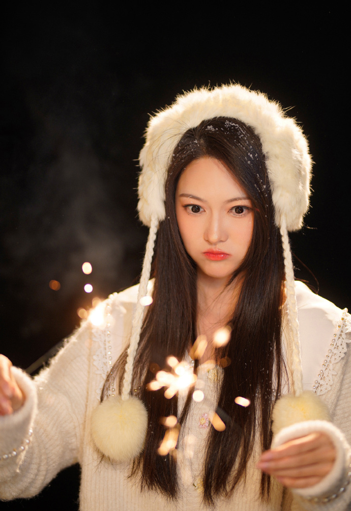 陆婷玉的烟花写真少女感十足,轻轻噘嘴的少女明媚灵动,眼神透露着纯真与美好,明眸皓齿、清丽自然。冬日里的烟火尽显温柔,烟火光影中更显唯美浪漫,暖暖的光晕有种爱情剧的氛围。晚风徐徐,定格美好。夜色下,你比烟花更美好。