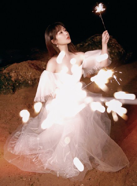 杨紫的海边烟花写真浑身散发着仙女气质。身着白色公主裙浪漫娇俏,满满法式风情的纱裙复古优雅又调皮。手拿仙女棒烟花,在梦幻的烟火下璀璨耀眼,展现星空下的少女感。笑容明媚氛围感拉满,时尚表现力拿捏得恰到好处。