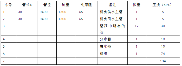 1)冷水机组阻力:由机组制造厂提供,一般为60~100kPa。