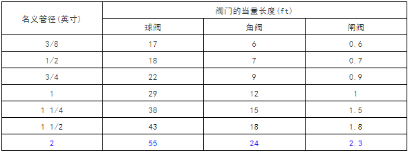 选定阀门的当量长度