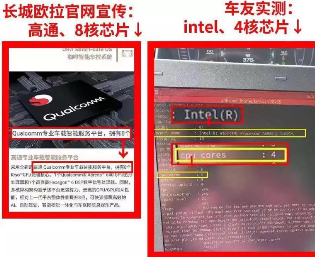 刘明涛还表示,欧拉此前在宣传物料中只是罗列了高通芯片参数,并没有明确表示芯片型号是高通8155,这恰好给了欧拉一个诡辩和拒绝更换车机的理由。从欧拉三次表态,到央视曝光后董玉东的回应,欧拉官方始终没有承认芯片减配之实,正是利用了这一点漏洞。