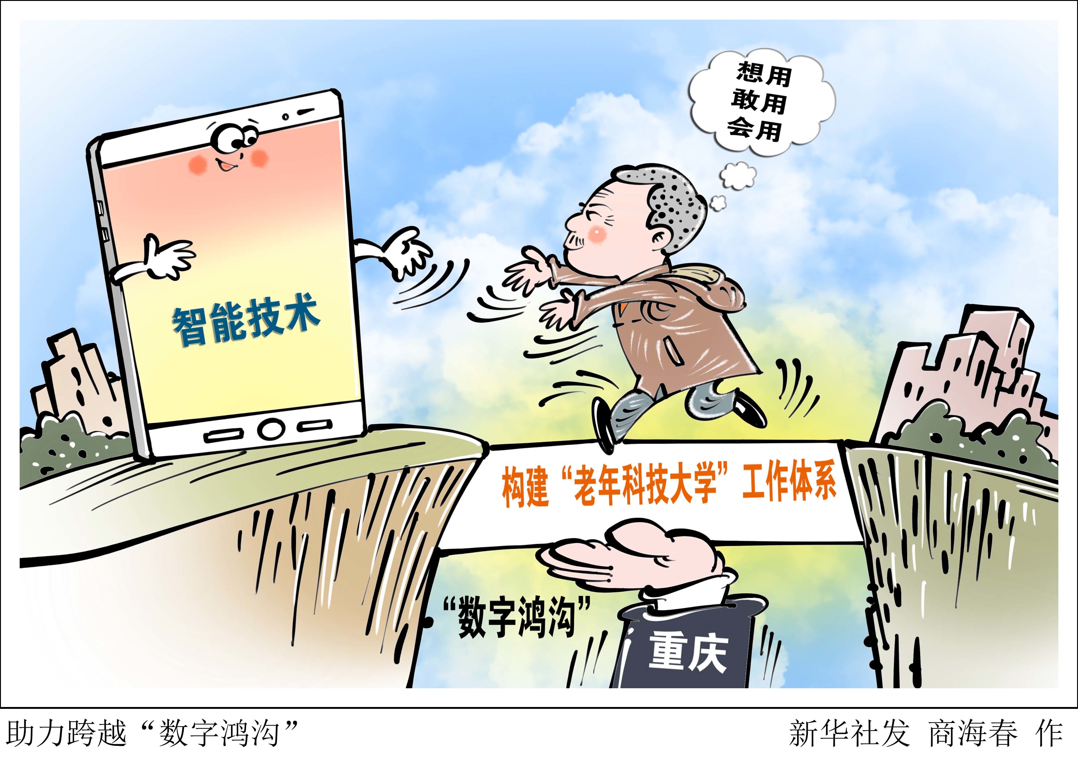 漫画:助力跨越“数字鸿沟”