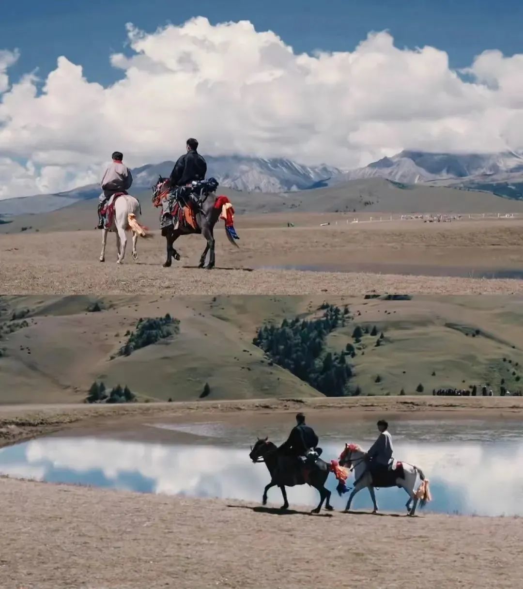 一个41岁,一个21岁,骑马,漫步,雪山,草原,宛如画报中走出来的男主角。