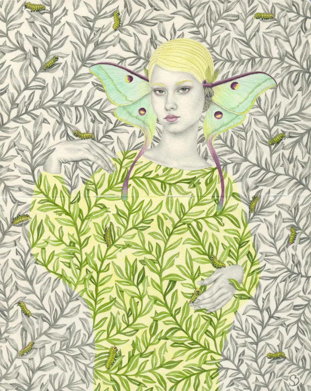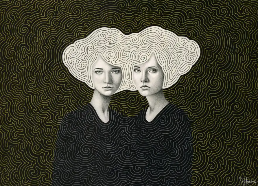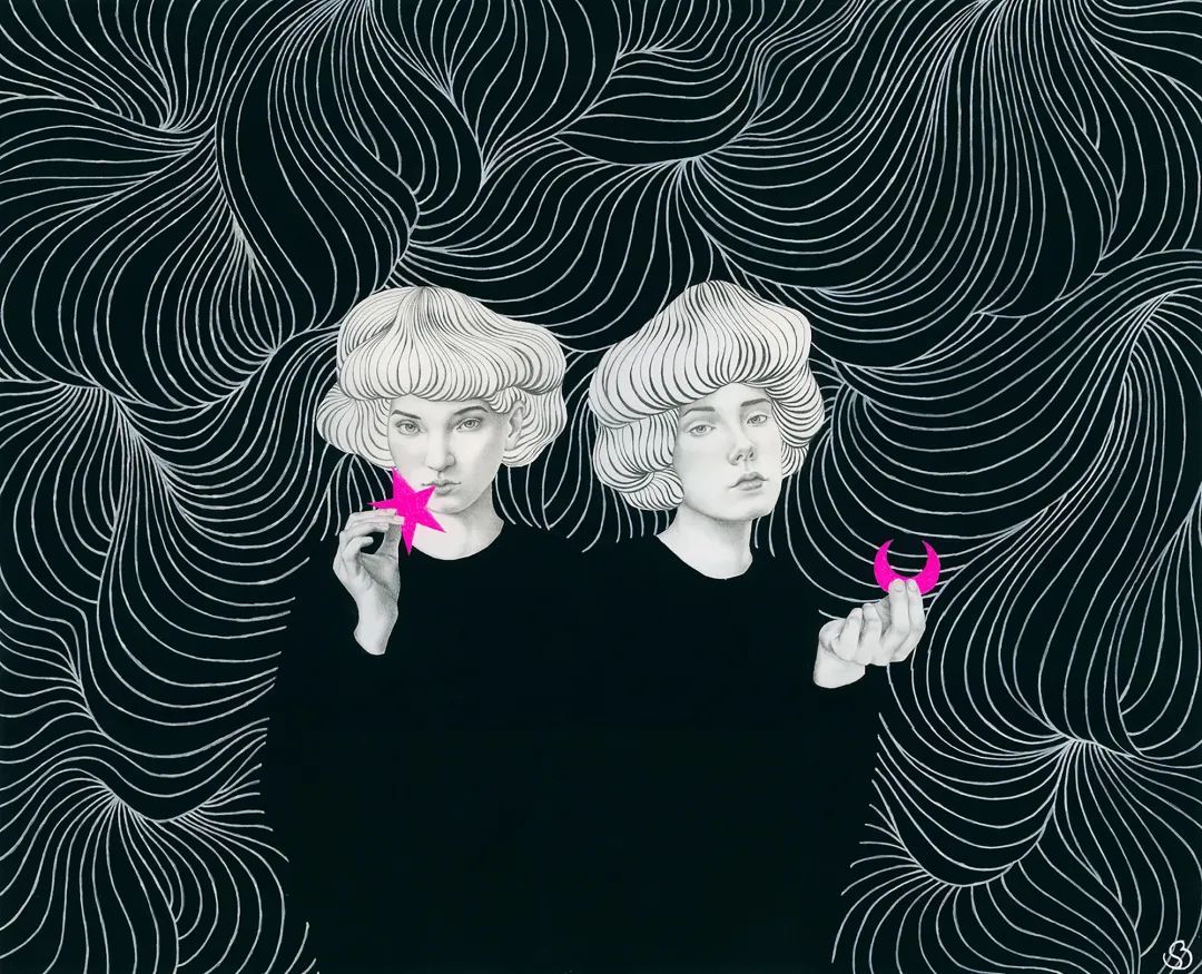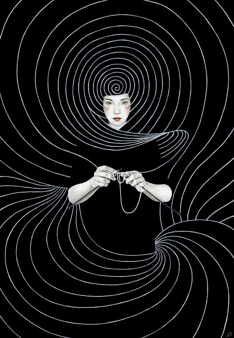 一直到2013年,索菲亚·博纳蒂才开启了她的艺术生涯,作为自学成才的艺术家,她同样经历了不知道怎么才能用画笔,表达出来自己的想法这一阶段,或许是天赋的原因,让她迅速找到自己的风格,开始用铅笔和水彩描绘这些让人晕眩的插画。