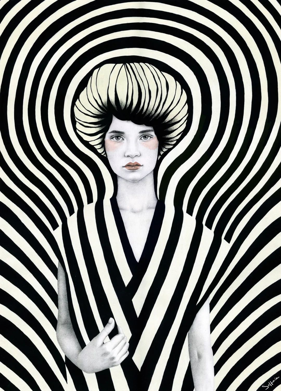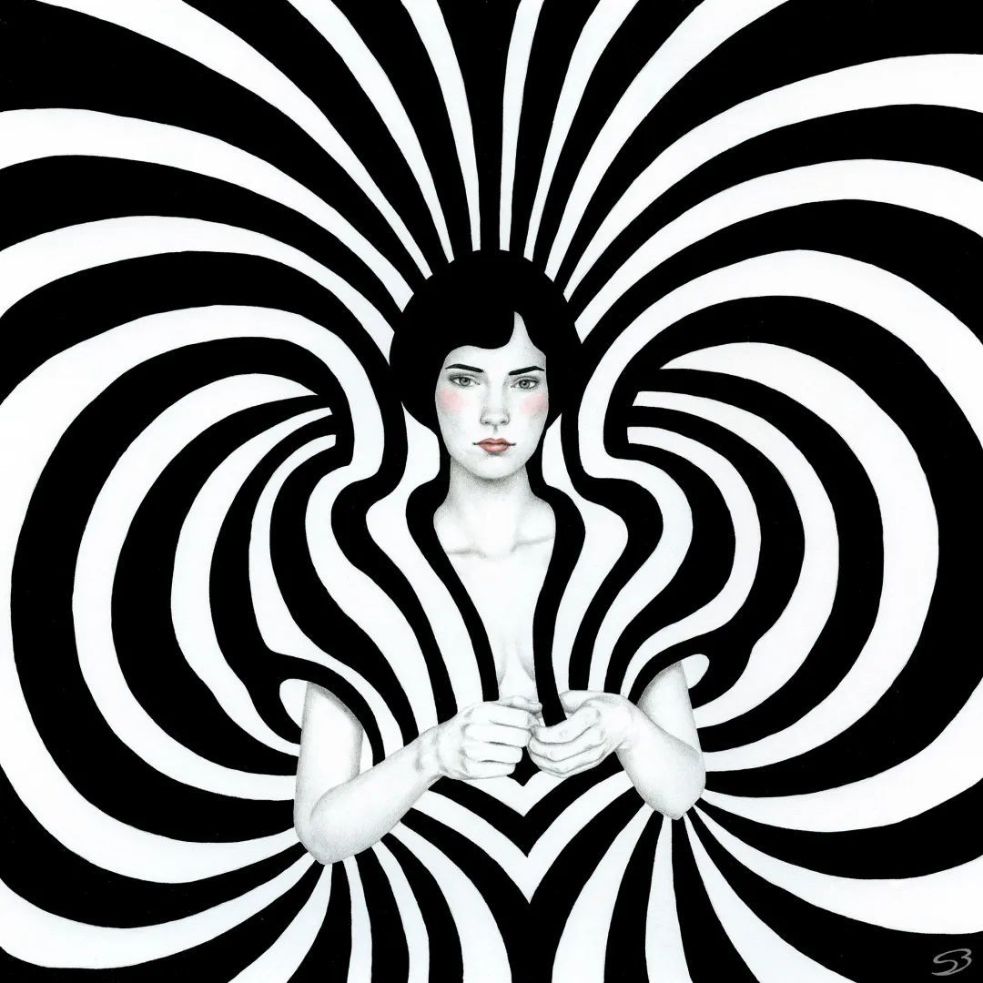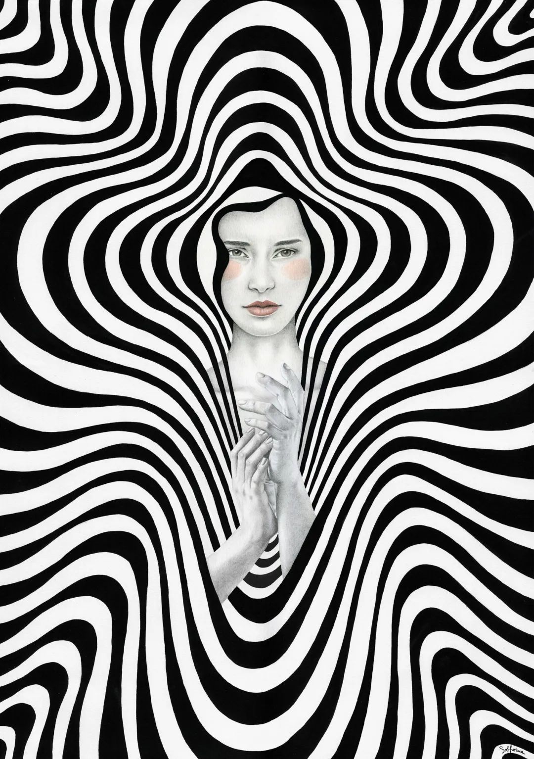 索菲亚·博纳蒂的画作可以称为催眠系作品,这个称呼是索菲亚·博纳蒂的粉丝送给她的称呼,这是因为,她的作品往往布满了环绕的黑白条纹,画面与黑白条纹组合在一起,让人欣赏起来有一种晕眩的感觉。
