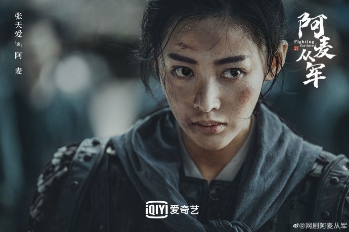 刚杀青的《阿麦从军》,张天爱饰演阿麦,从海报看那股战损感很吸睛。