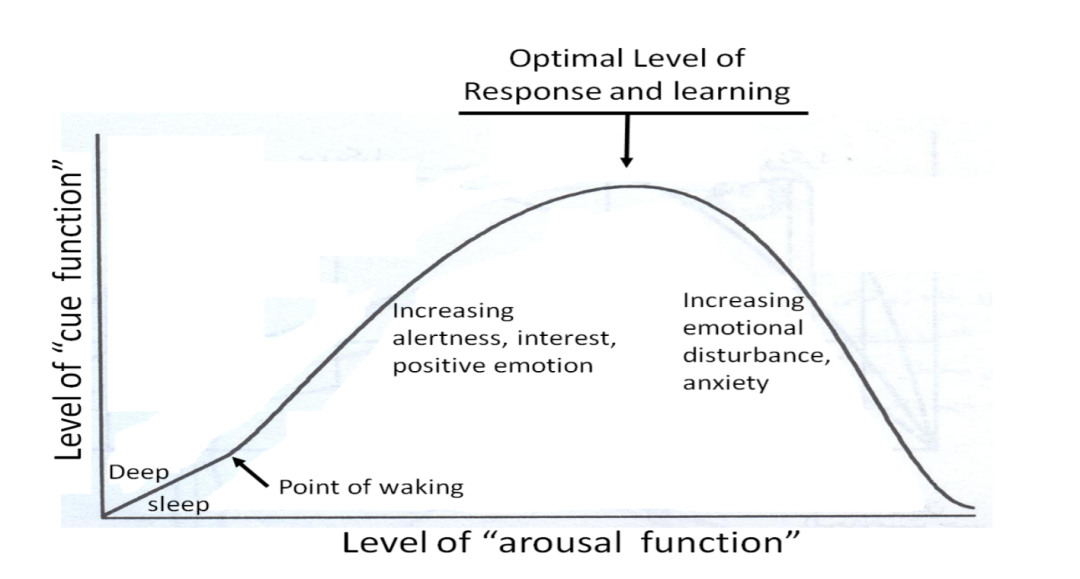 如图所示,这是一个关于唤醒焦虑感程度与其有效性的理论模型。在最佳唤醒度(optimal level response and learning)状态下,观众焦虑的唤起可能给他们带来机敏,兴趣和正向情绪的增加;而一旦超过这个阈值,情绪性会迅速控制观众,使他们感受到消极的焦虑和困扰。
