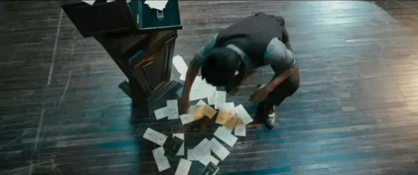 而在《扬名立万》中,观众的注意力也会被镜头引导到具体道具上。