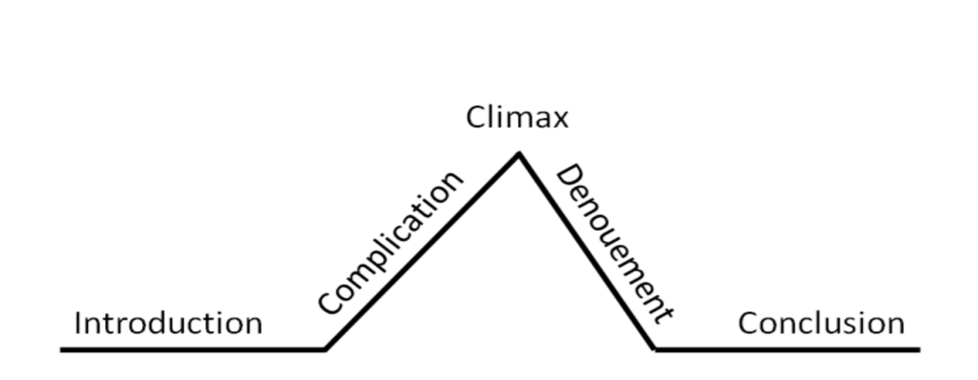 弗莱塔格金字塔(frytag pyramid)指的是一种电影的叙事结构。它大致分为介绍(introduction)、困难(complication)、高潮(climax)、终场(denouement)和总结(conclusion)五个部分。