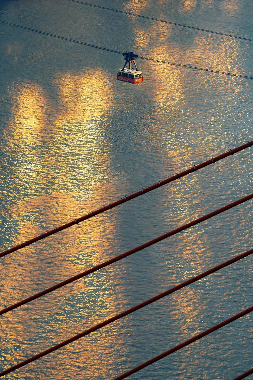虽然排队会排到你怀疑人生,但是当乘上缆车,从空中飞越长江,看着窗外撩人的风景,美得一塌糊涂,会发现排队也值了。