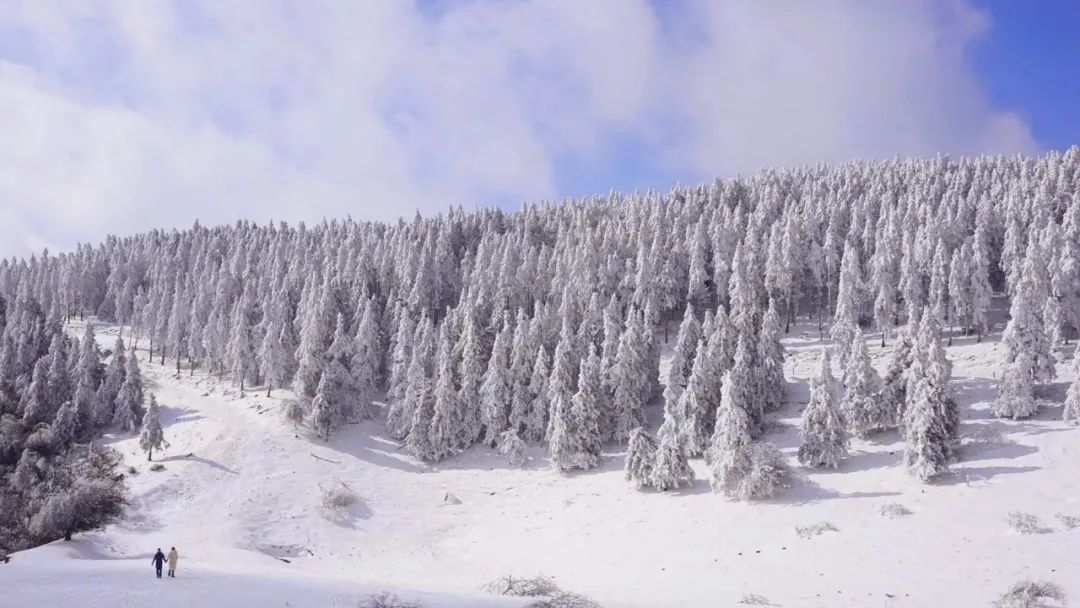 目光所及皆是白茫茫一片,厚厚的积雪挂在了树枝上,形成了冰挂雾凇的奇景,真的怀疑自己去的是不是东北。