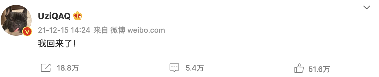 终于时隔560天Uzi重返赛场,LPL006号选手重新起航,这一刻很多人似乎心中的热血再次燃起。刚刚很多媒体发布了一些关于Uzi的视频,其中他提到的几句话也是令大家很有感触。“其实我的心里想得是,我还没有离开这个赛场,我一直感觉这只是一个暂时性的吧,但是这个时间,可能是接下来的所有时间,也可能只是一年两年三年”、“如果以后我的状态还有我的身体方面都能恢复到最佳,或者是能够慢慢地变得好起来,我还是挺想回到这个赛场的”。而他微博与朋友圈的动态,也说明Uzi等这一刻真的很久了,对于这次复出也同样非常激动。