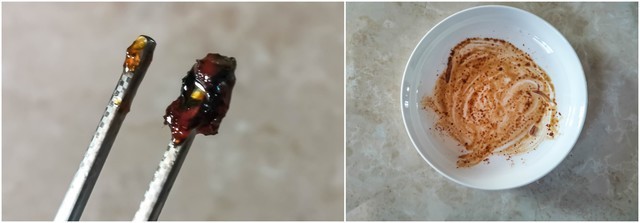 此外为了模拟更真实的使用效果,我还放入了一个模拟正常炒菜后脏污的盘子(油脂和酱油),以及一双沾满硬糖浆的筷子。