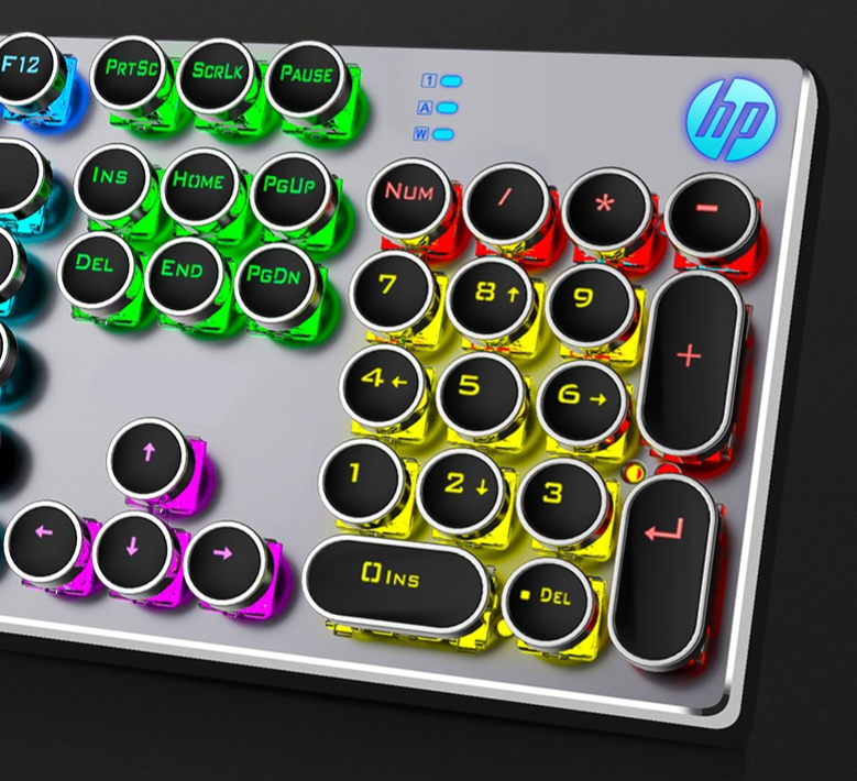 这是一款出自惠普旗下的朋克机械键盘---惠普GK400机械键盘。最早的时候也是游戏里一起老组队的网友推荐给我的,复古的经典外观设计,搭配多种灯效,让我在游戏当中可以更好的去感受指尖与键盘擦出来的火花,体验游戏当中酣畅淋漓般的大快人心。