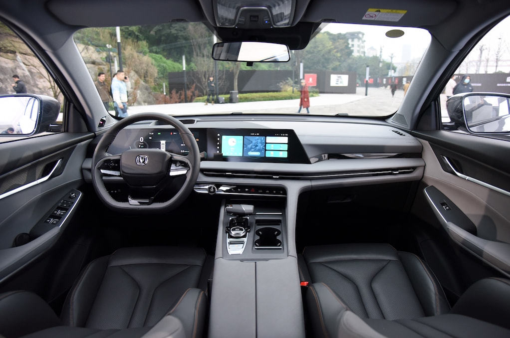 内饰部分,新车将配备双12.3英寸的全液晶仪表盘与中控多媒体触摸屏相连接的双联屏设计,并采用超长一体曲面无折痕工艺,搭配三辐式多功能方向盘,以及电子换挡机构,还有皮质内饰面板和座椅等。
