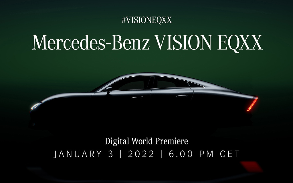 奔驰官方宣布将于欧洲中部时间1月3日(北京时间1月4日)在线上全球首发一款全新概念车——梅赛德斯-奔驰VISION EQXX,通过官方发布的预告图可以看出,