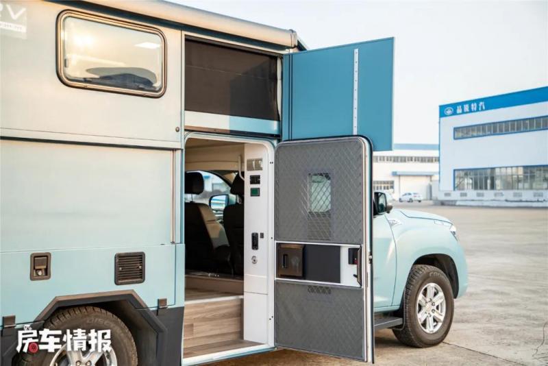 有很多网友很担心降下升顶后车厢的乘客门不能正常开启,但是这款房车在车门上是做了特殊的设计,分为上下两部分,这样就不必担心影响车门开启的问题,而且乘客门相比一般车型较宽,即便身材丰满的人也可以顺畅的上下车。