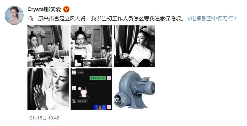 而张天爱在看到了大家的好评后,却表示其实南宫仆射是“立风”人设。难怪当初工作人员要她注意保暖呢~~