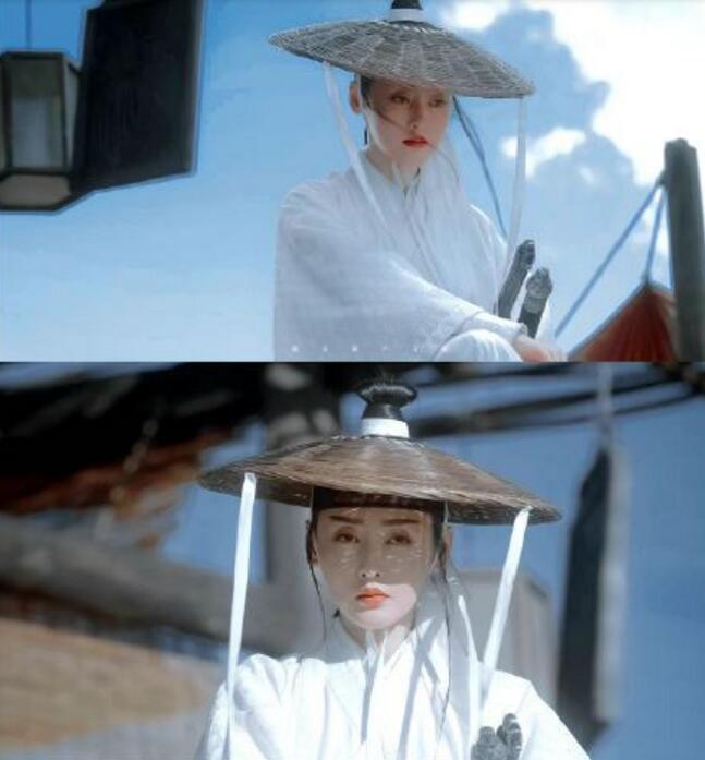 尤其是张天爱在《雪中悍刀行》中的古装造型,英气十足的眉毛,加上偏橘色的唇彩,让她的整个造型都很有港风古装的气质。