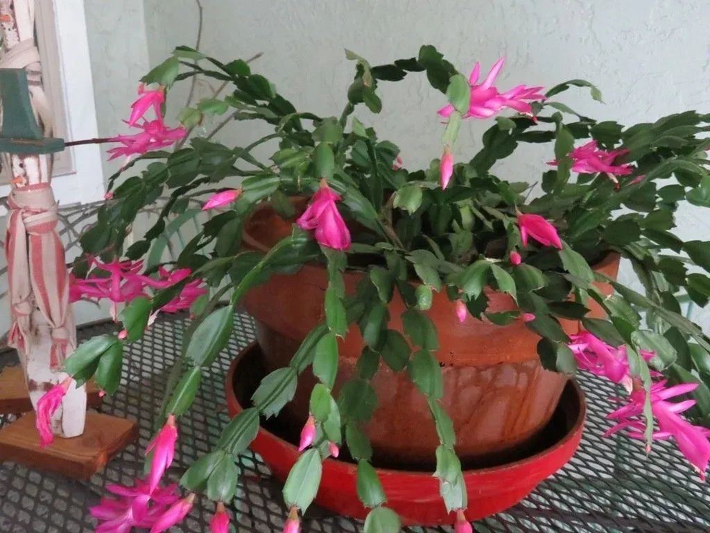 蟹爪兰盆栽养在室内,可以摆放在每天有3~5小时左右光照的地方,如果朝南的窗台光照过度充足,就是要搬到离窗户稍微远一点的地方,避免过度暴晒,如果光照过度强烈,它的叶子会由翠绿的颜色变成红色,叶子边缘还容易出现发黄干枯的情况,这时候就要减少光照了。