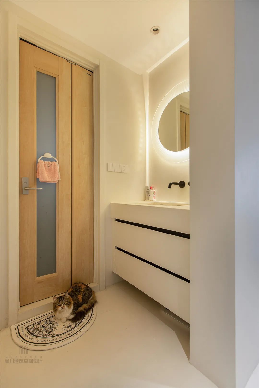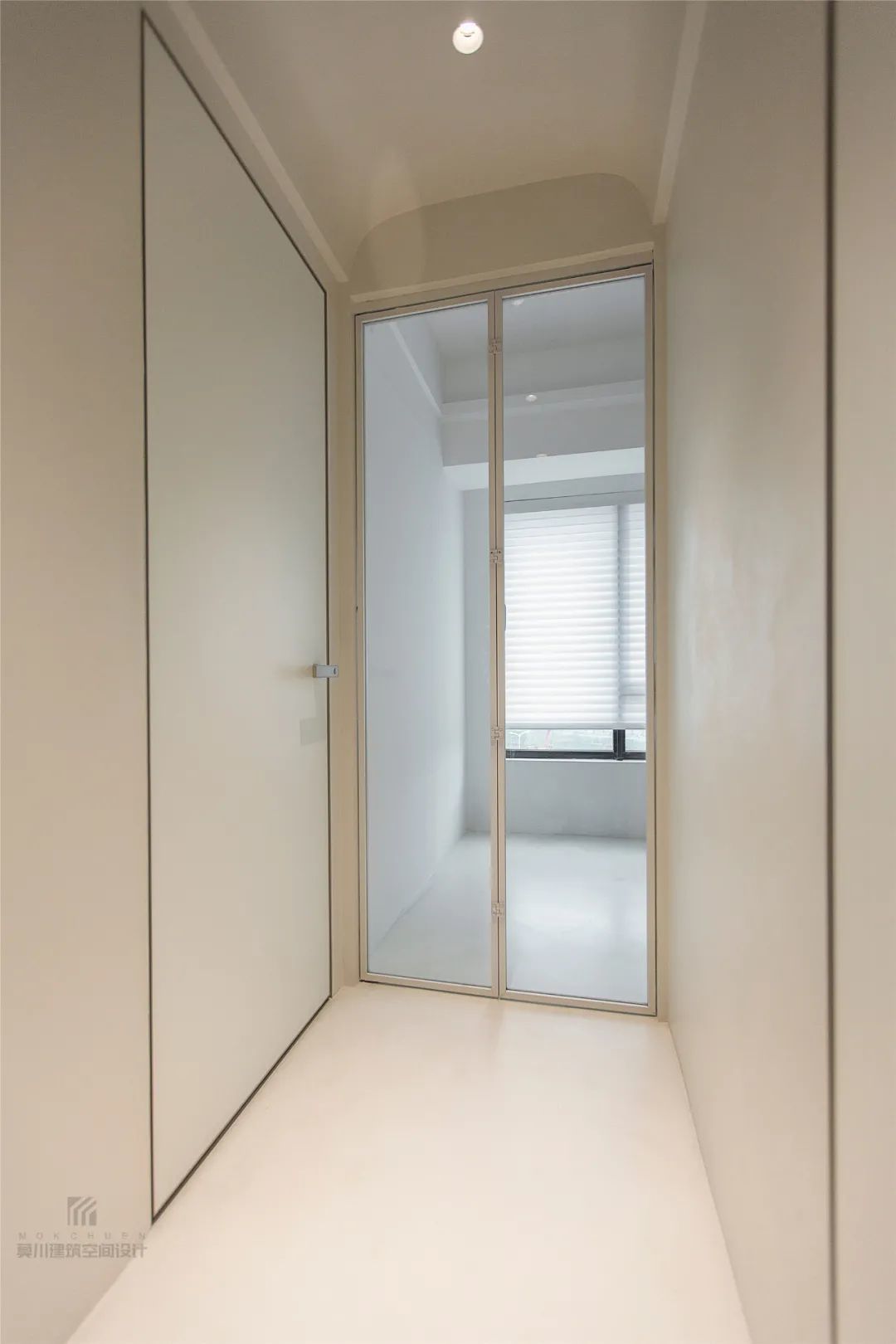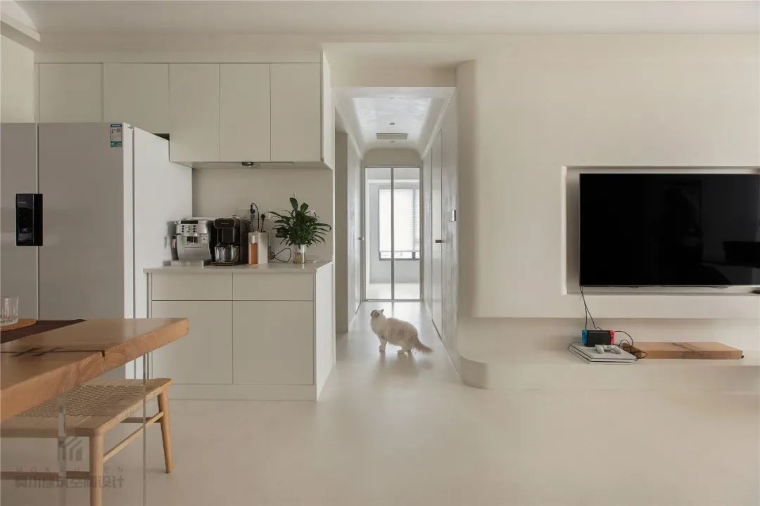 ▲没有踢脚线的设计、加上极简的房门,也让过道显得更加个性独特。