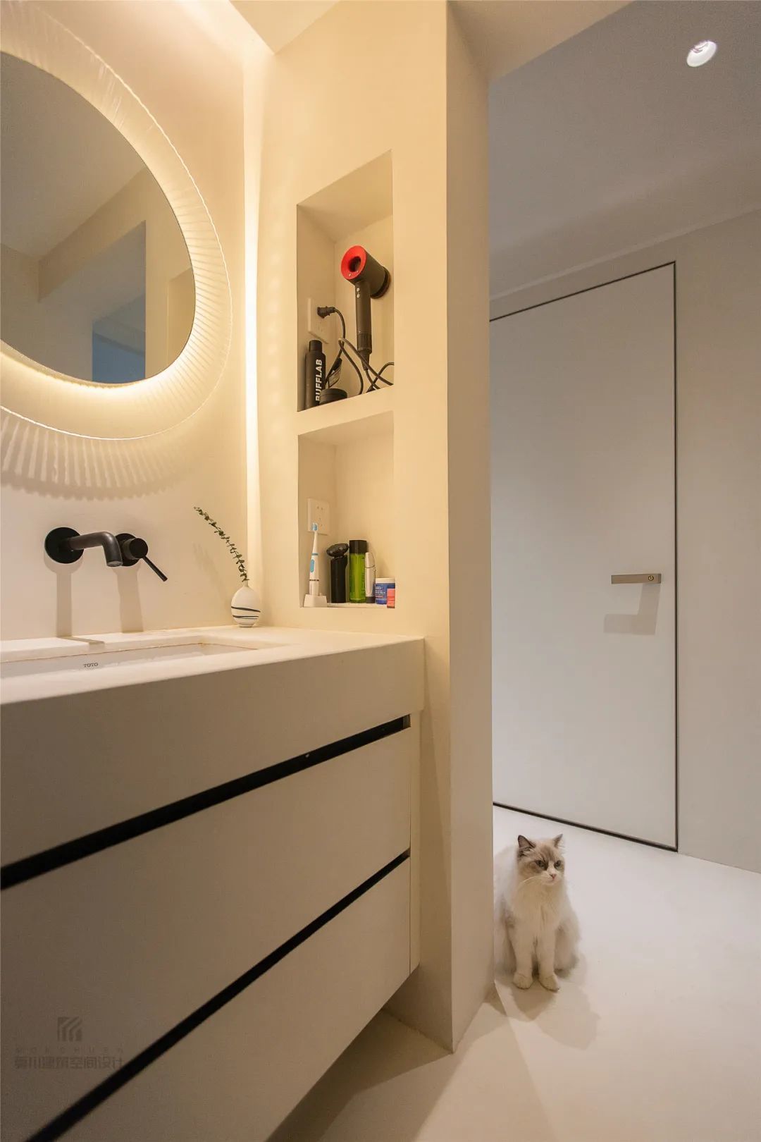 ▲洗手盆侧边加入壁龛设计,也让卫浴用品得到了更加合理方便的收纳摆放。
