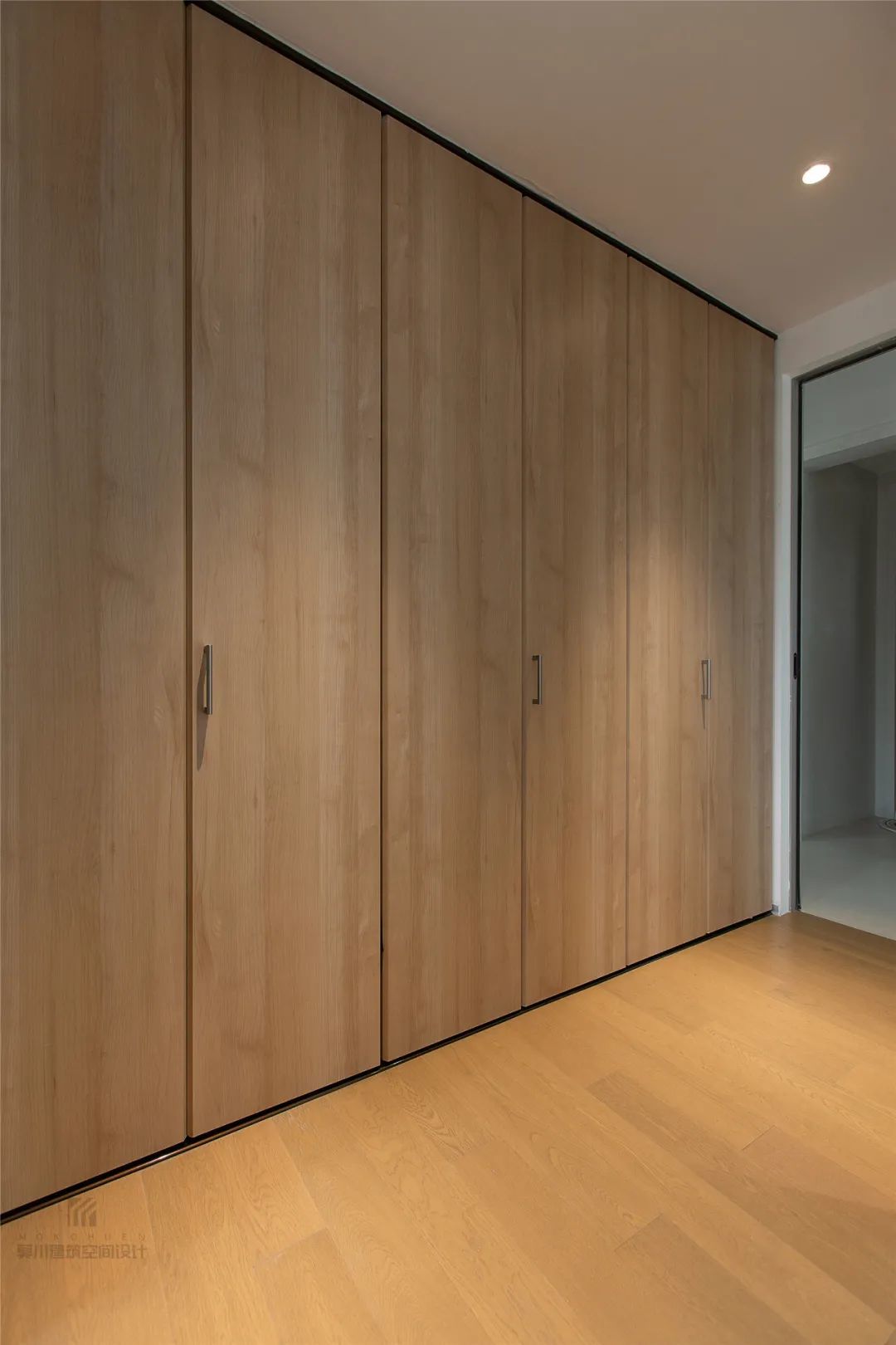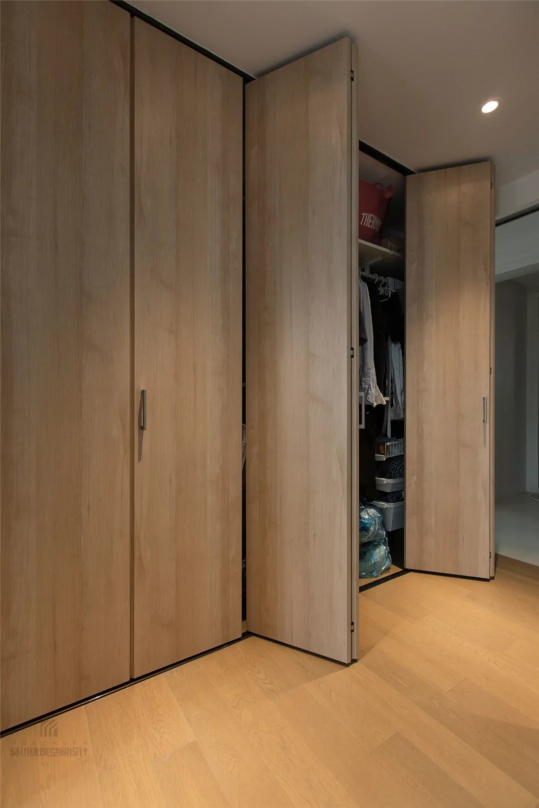 ▲衣帽间与木地板+木质定制衣柜的设计,整个空间简约舒适而温馨自然。