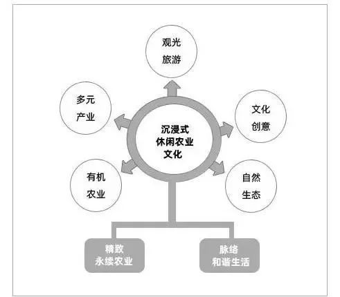 文化创意,不仅是基于对生活的热爱、对土地的情感、对自然的尊重,更是对有机农业、观光旅游、自然生态的产业联动。它不能是填鸭式的组合、大杂烩,更不能对民俗、地域等文化简单的粗制滥造。真正的文化创意,是对在地性农业“把脉号诊”后对症下药,提出的应对方案,它既能激活农村产业,又能形成农村品牌优势。因此,打造出能触动游客心灵的全新的沉浸式休闲农业新业态,一定要在核心要素(主题)下,融入鲜活的文化创意,从视觉、听觉、嗅觉、触觉等给予参与者全方位的角色体验,或是追忆过去,触发情怀;或是探索未来,引发好奇,多角度、多层次的刺激满足参与者的内心精神需求。