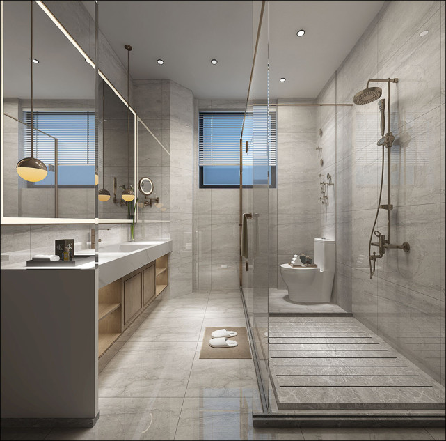 风格突出简约干练,色彩追求统一,灰色、白色和木质的沉淀感互相融合,更多出一份舒适和温暖。