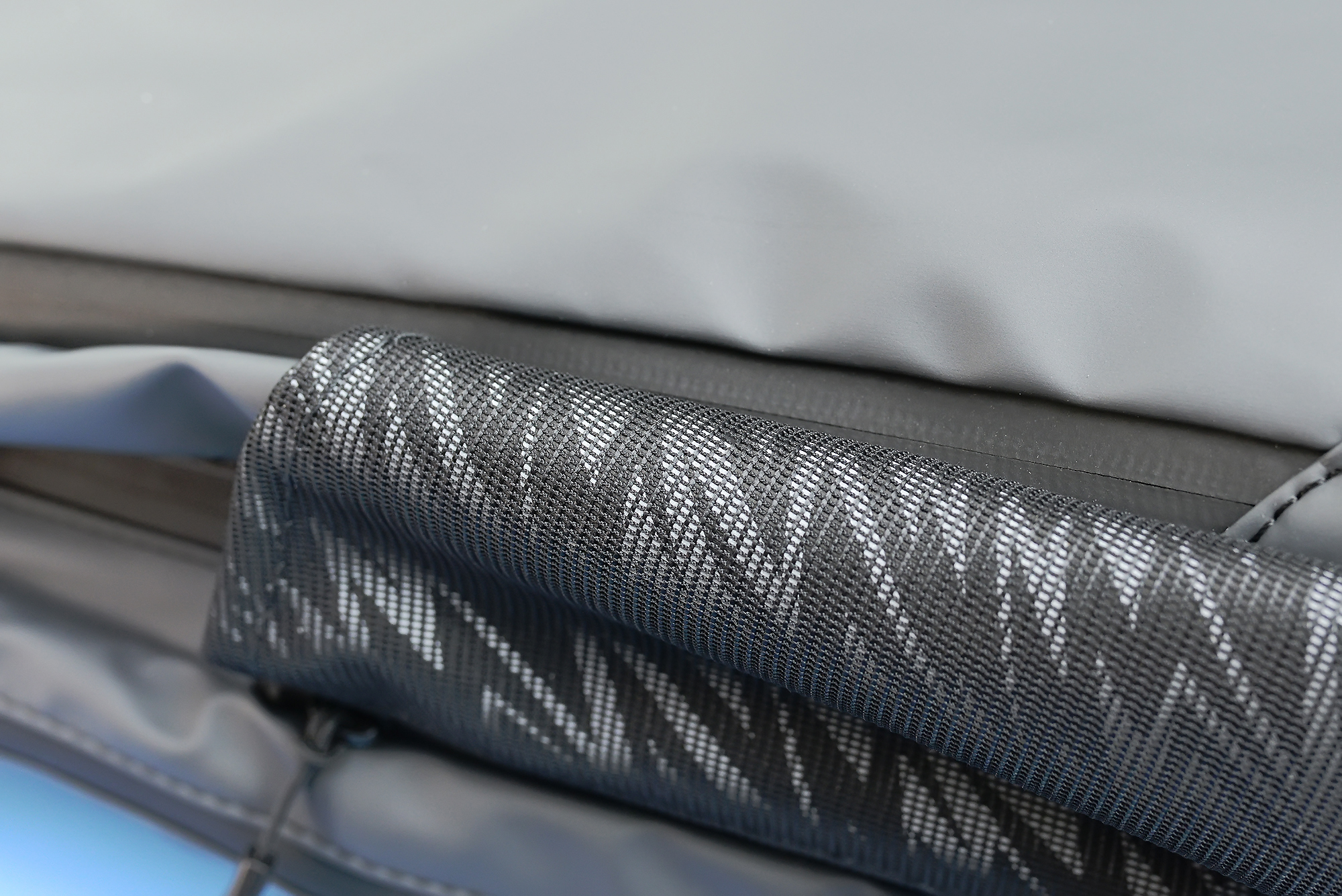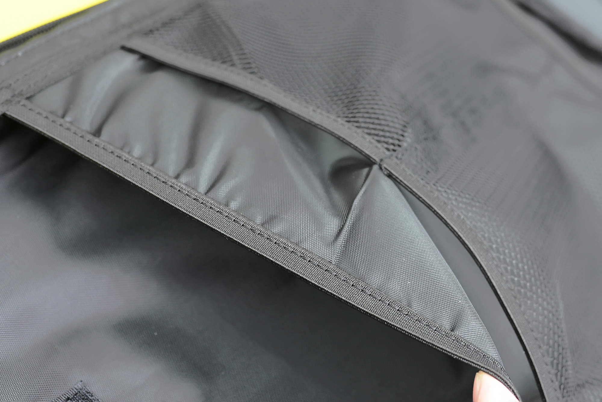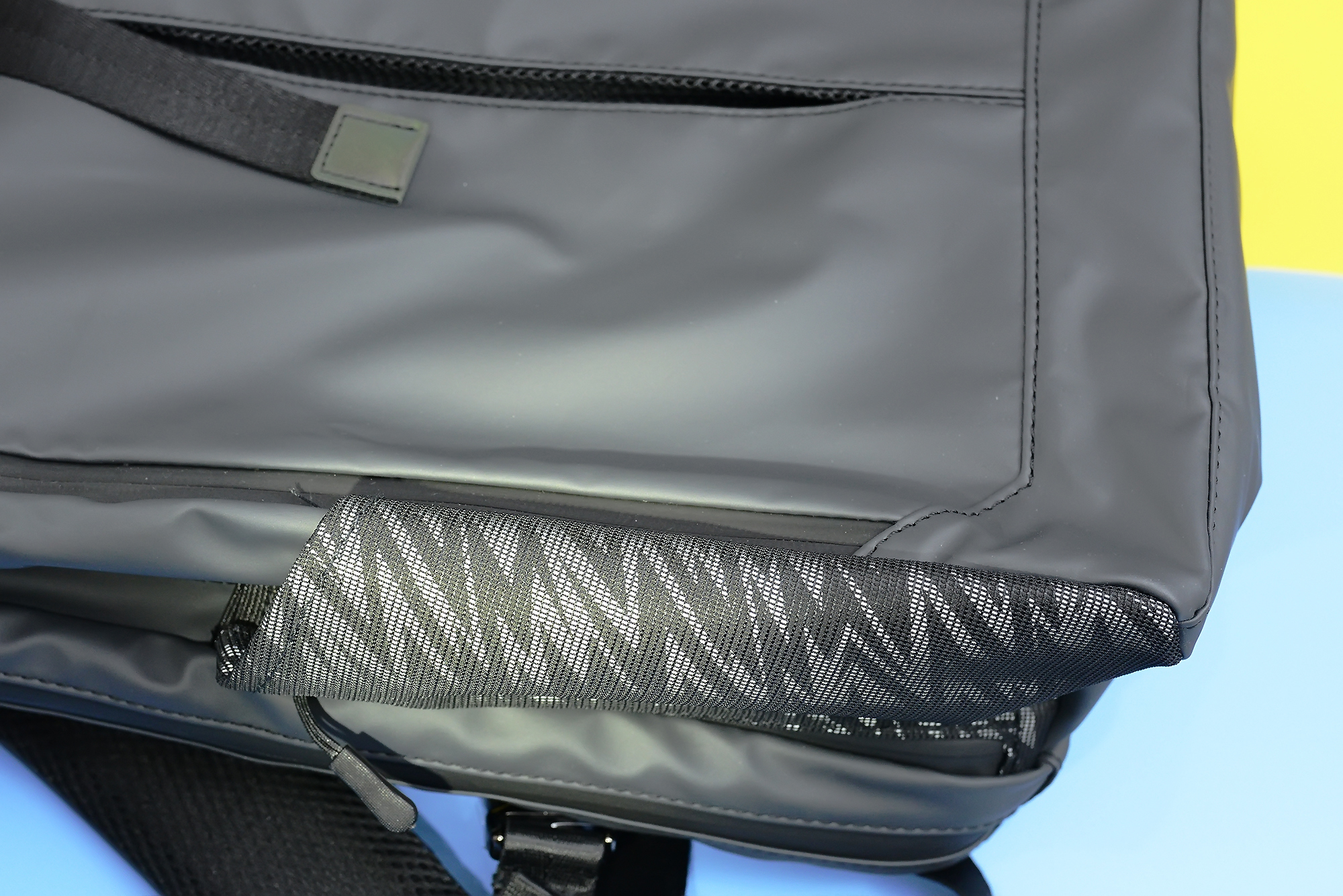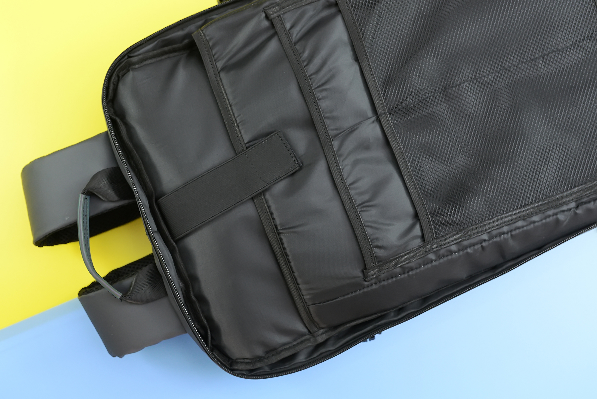 可以看到,在电脑收纳空间,是加入了诸多保护设计的,不单单是内层加入了高弹海绵,而且还加入了AIR CUSHION防震气垫设计,防护性非常到位。