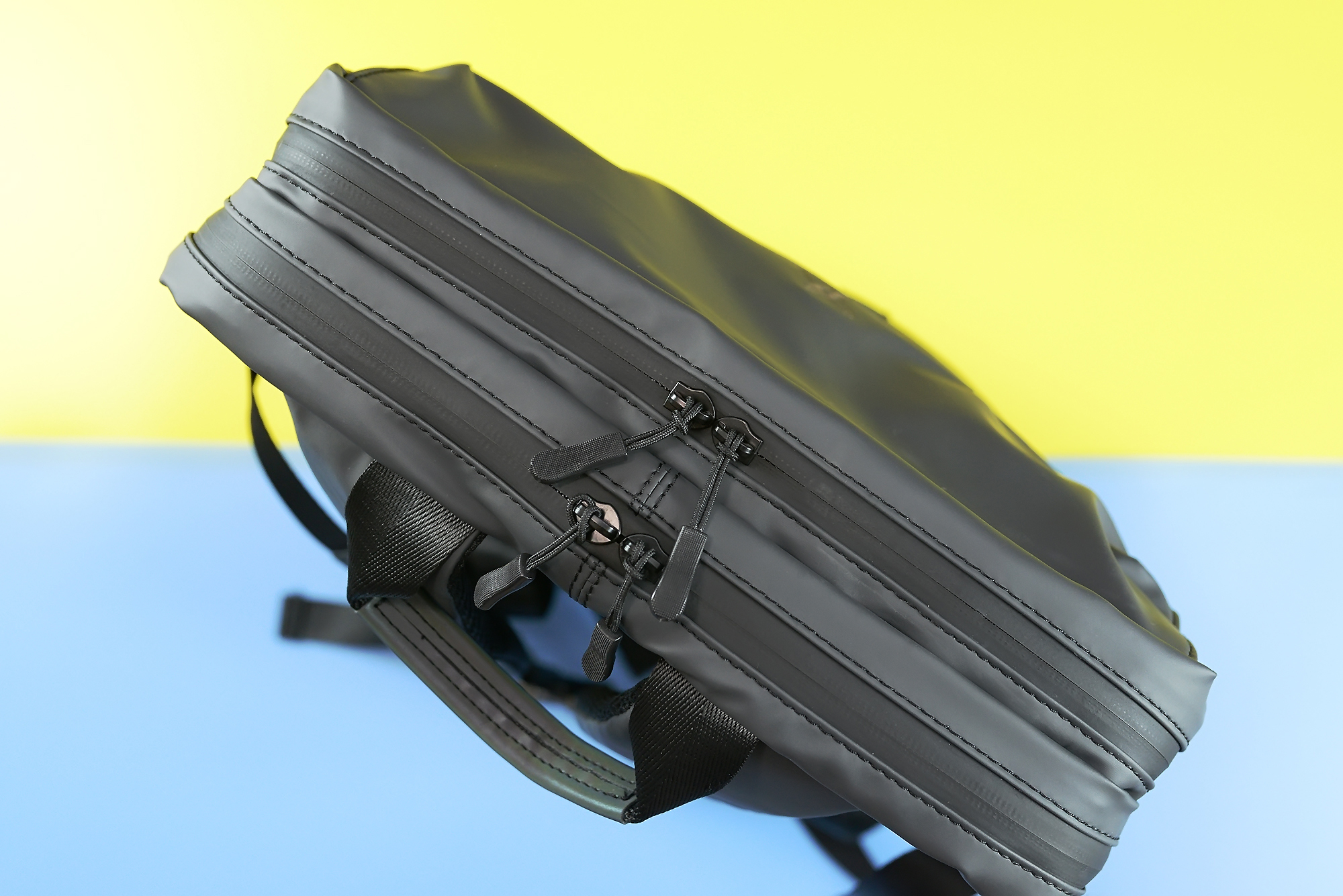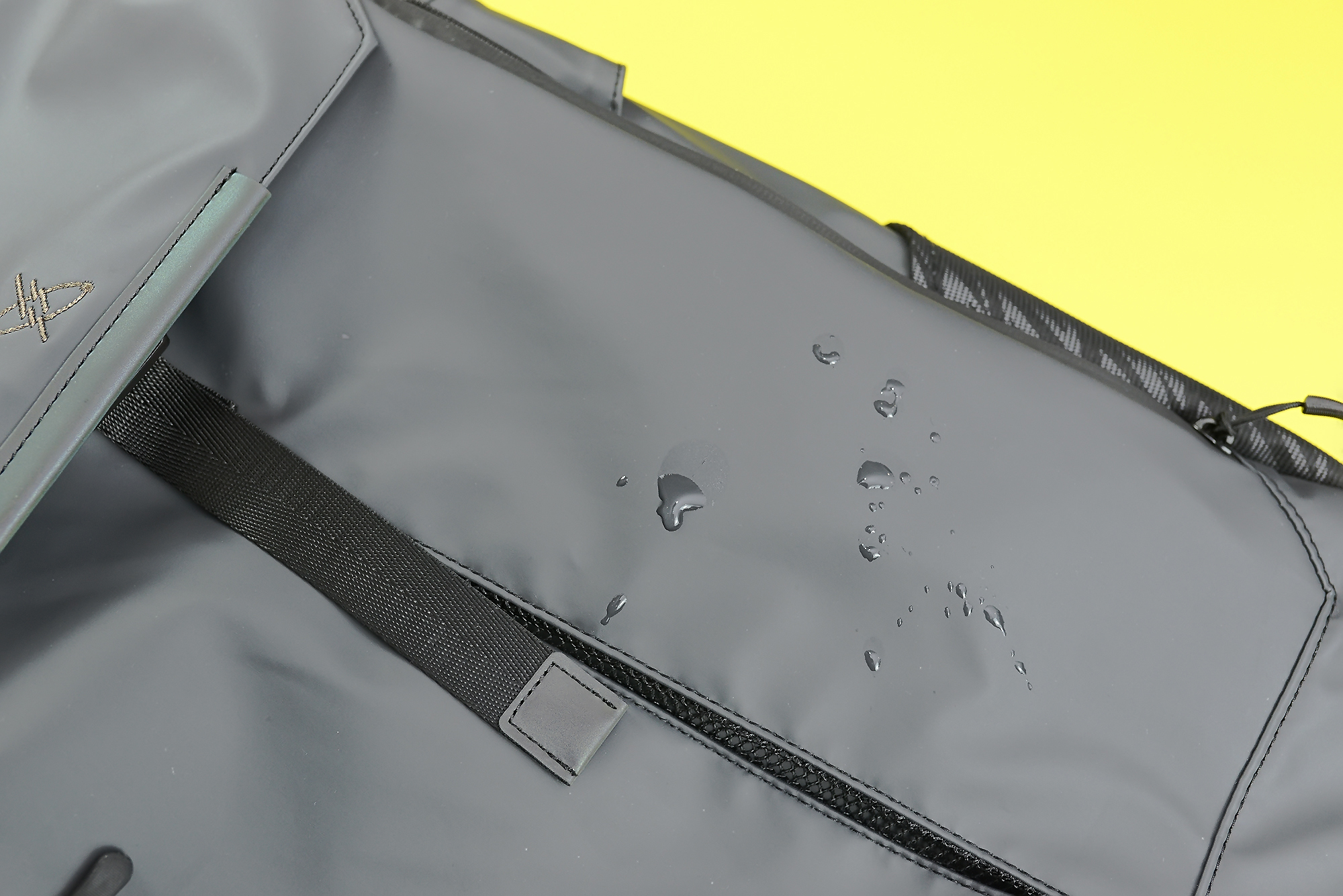 宙斯双肩背包的面料采用的是高密度科技材质面料,表层带有防水的UV涂层,配合拉链的防水功能,日常出行遭遇雨天也不会淋湿背包里的物品。