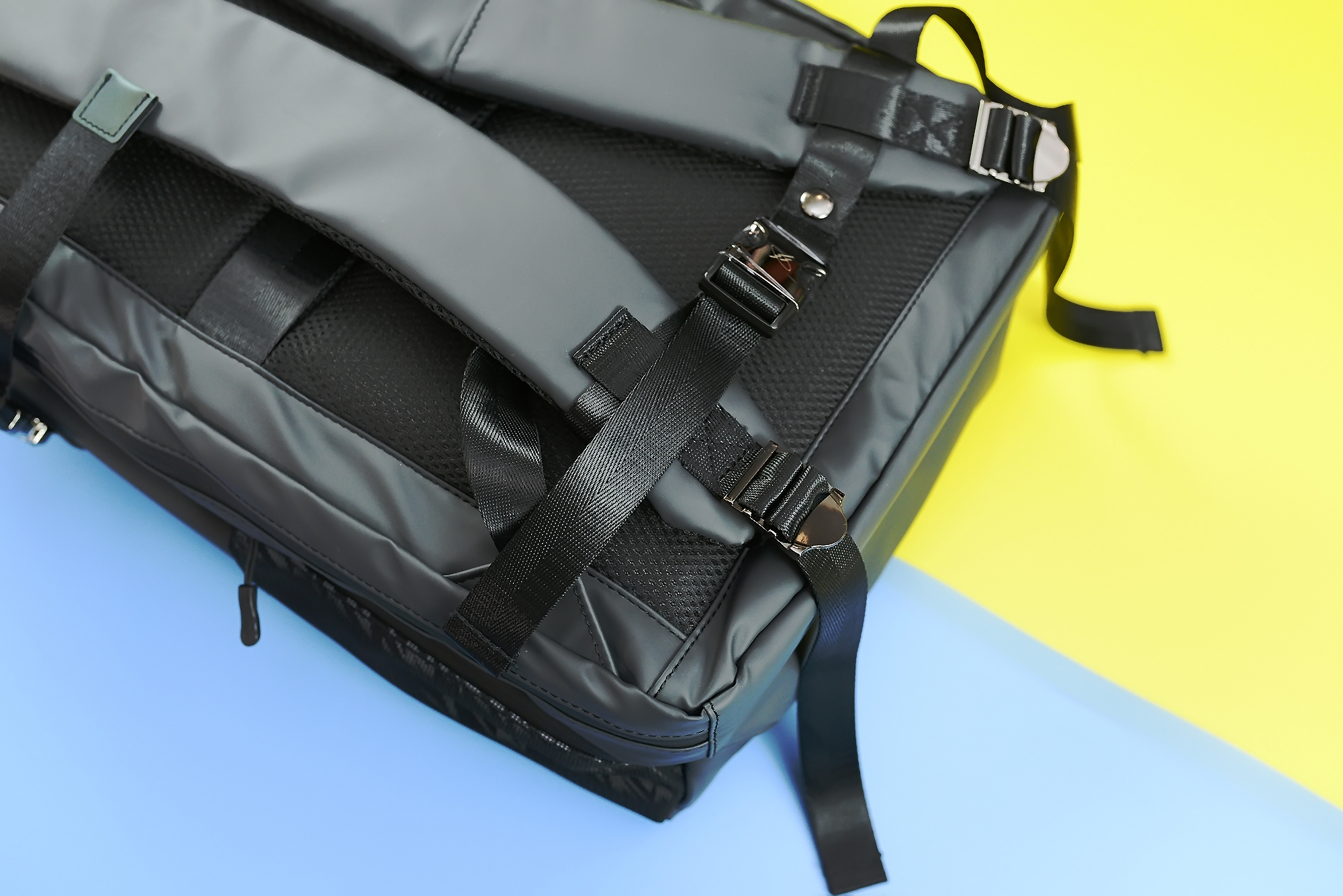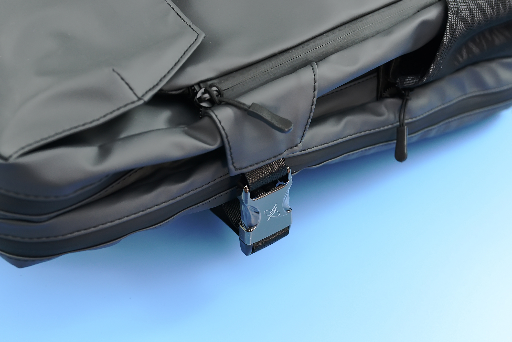 背包的插扣,都是更耐用的五金插扣,而且都是带有光影行星LOGO的定制品。另外这个插扣带还是可拆卸设计,让日常通勤使用,少了户外风,更多都市感。