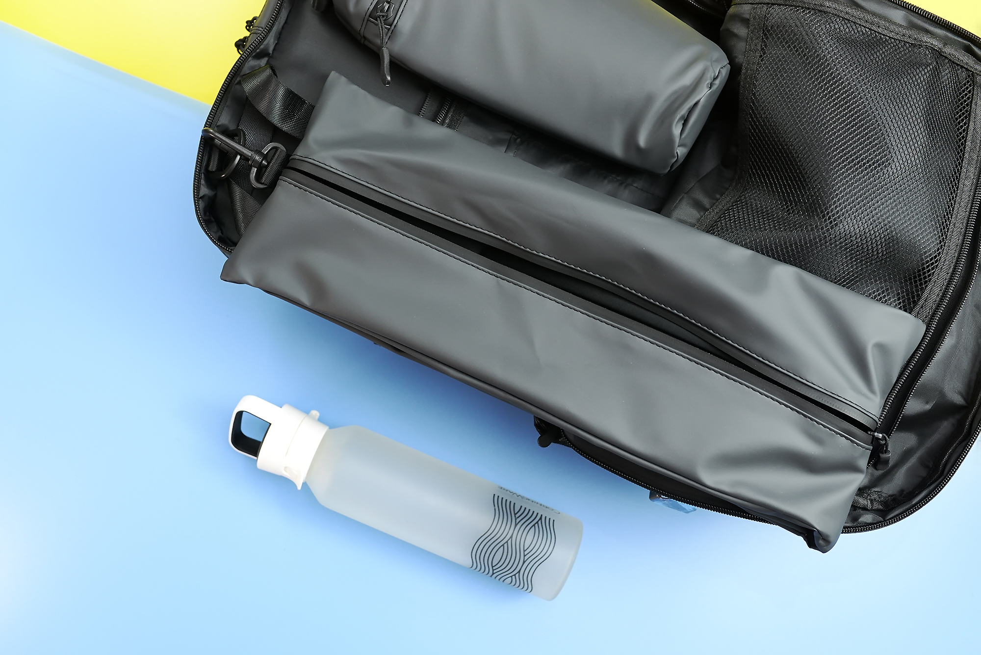 宙斯双肩背包的第二层收纳空间,附送了干湿分离袋,可以收纳运动鞋或者运动后的湿衣服。