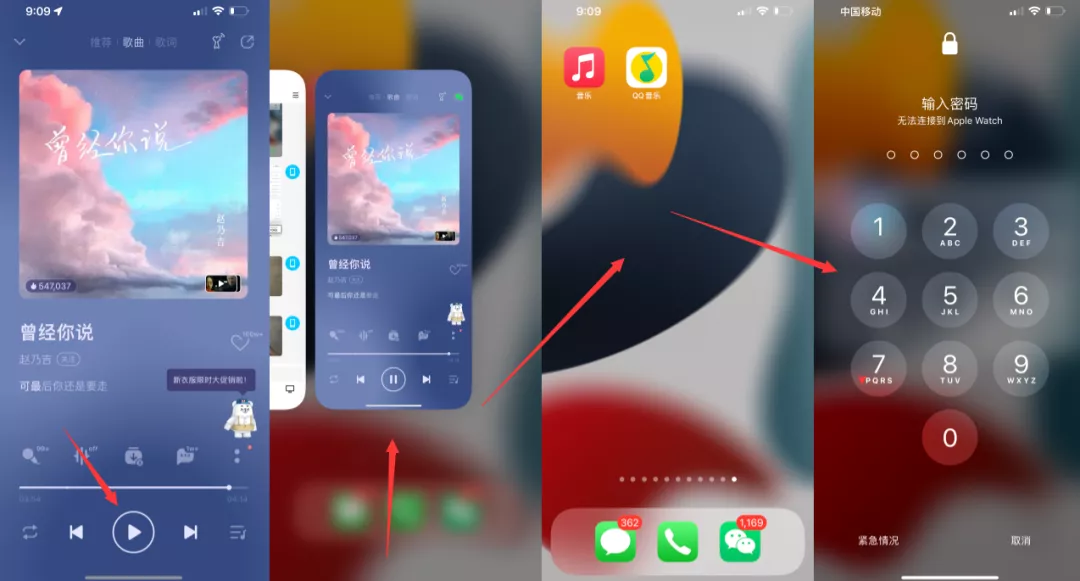 2.选择播放音乐,快速返回主界面后锁屏