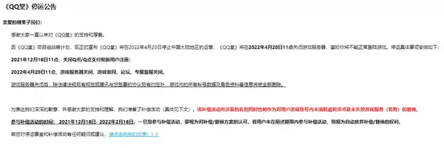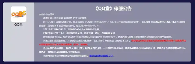 QQ堂将在2022年4月20日11点关闭游戏服务器,届时你将不能正常登陆游戏,停运具体事项安排如下: