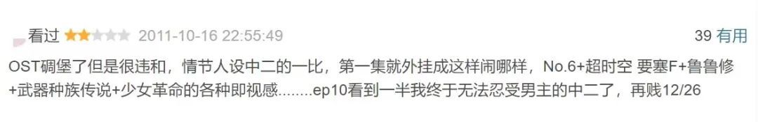 比如在网易云看到过这样的评论:“罪恶王冠是我的入宅作,当初一口气看完导致我几个月抑 郁失落,不想 再看 任何动漫。这种想法持续一年之久,直到我看到命运石之门和空之境界。哎呀!一不小心安利了两部神作呢。”