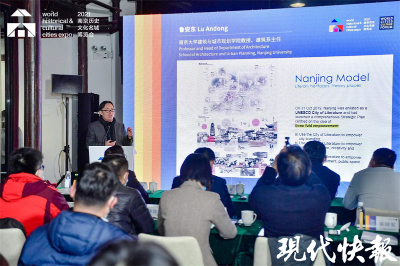 现代快报讯(记者 卢河燕/文 顾闻/摄)追寻城市之根,传承悠悠文脉。12月16日下午,南京历史文化名城博览会重头戏之一——2021世界城市遗产与创新论坛在南京门东三条营历史文化街区小东园内举行。论坛以“文化遗产激活-迈向可持续的城市创新”为主题,专家学者通过线上线下的方式,探讨城市在面对遗产和文化时的创新路径,分享世界各地的最佳实践。值得关注的是,《文化推动世界城市活力报告》在现场重磅发布。南京作为全球案例被提及,其在文学文化方面的活力指标引人注目。