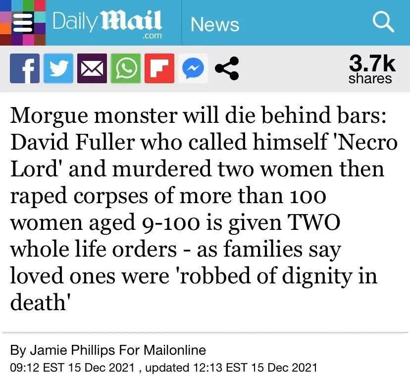 许多受害者的家属还要求进行公开调查,并希望英国国会议员改革恋尸癖法——目前该罪行的最高刑期仅为两年。也就是说,如果不是因为富勒还杀死了两名女性,他只需要坐牢两年就能重获自由。