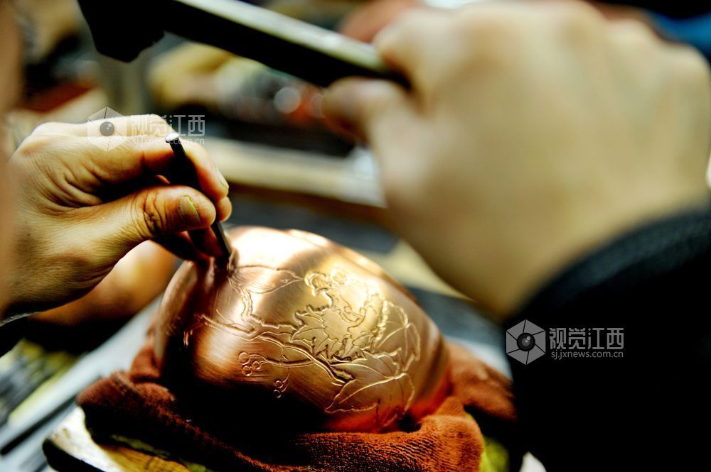 2021年12月17日,江西省贵溪市国家级錾铜雕刻技艺大师工作室内,叮叮当当的敲击声此起彼伏,只见国家级技能大师、铜錾刻“非遗”传承人黄俊军正在工作室一边创作、一边指导自己的这些“徒弟们”精心创作。