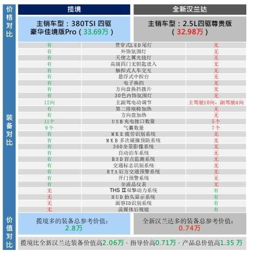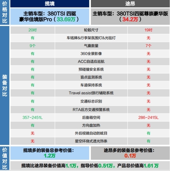 揽境和途昂主销对比