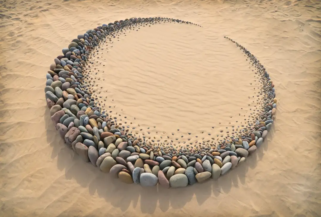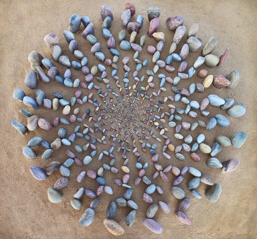 提起用石头拼凑的大地艺术,就不得不提到一位名叫乔恩·福尔曼的艺术家,乔恩·福尔曼从十几年前就开始用石头去制作大地艺术,几乎将我们能想到的图案都做完了。