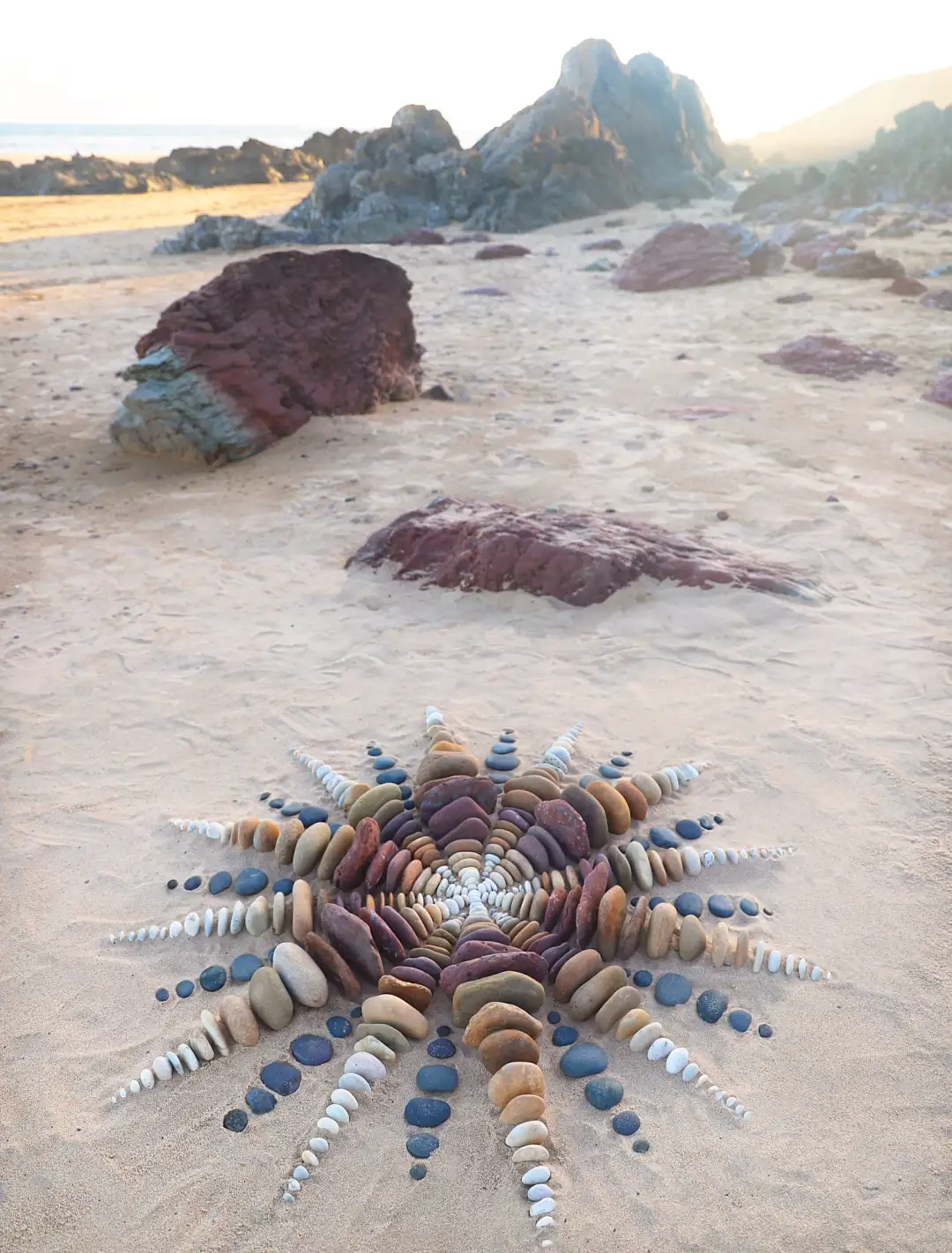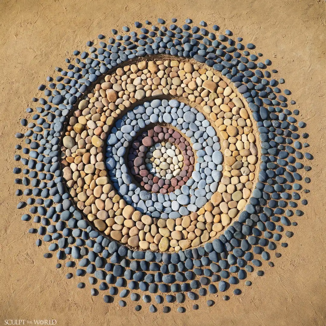 不同的大地艺术家,也有不同的创作习惯,有的艺术家擅长用树叶拼凑大地艺术,有的艺术家擅长在海滩上绘画,不过,最受人们喜爱的当属用石头制作的大地艺术。