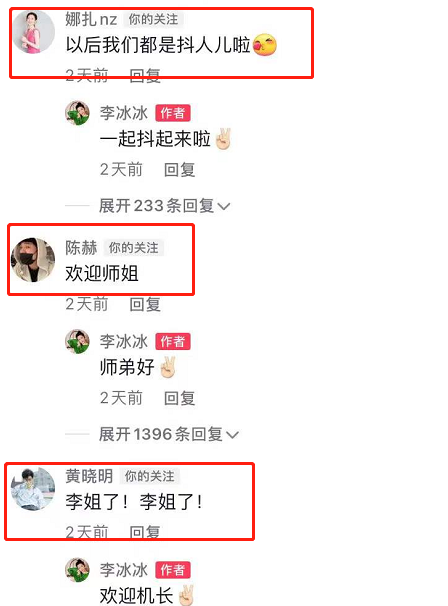 首支视频发布之后,众明星纷纷来柳岩支持欢迎李冰冰,古力娜扎称“我们以后都是抖人啦”。陈赫表示“欢迎师姐”,黄晓明更是活泼异常“李姐了!”。李冰冰的回复也很见情商,活泼中不失礼貌和客气。