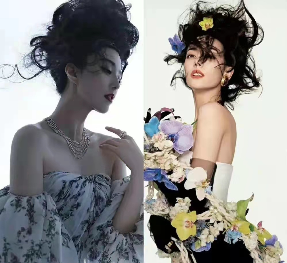 除此之外,迪丽热巴拍摄杂志时,盘起的凌乱大卷的长发,有些头发微微掉落的造型,被指迪丽热巴不管是造型风格和拍摄角度都在模仿范冰冰。